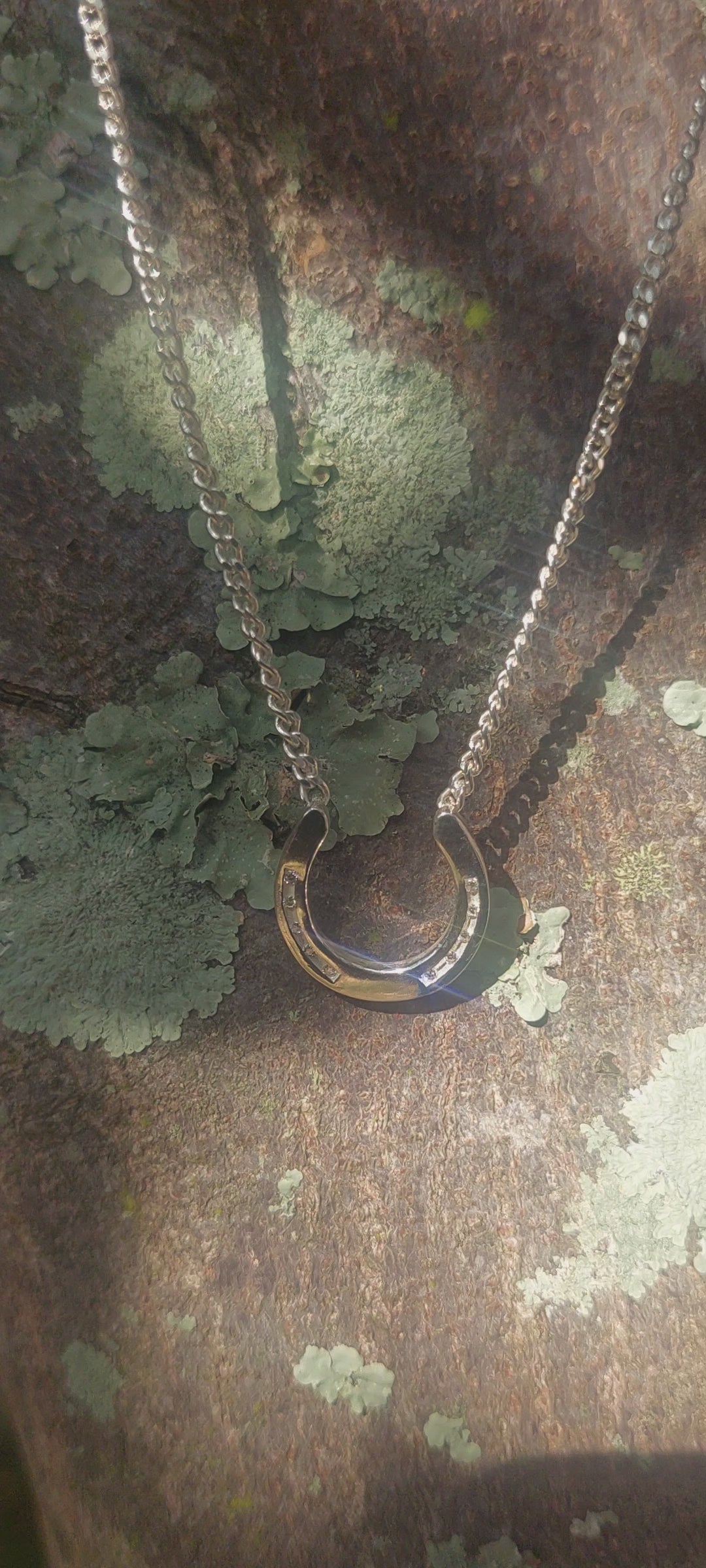 Crafted in solid sterling silver, the pendant features a classic horseshoe design, gracefully curved to invite prosperity. Whether you're in the saddle, at the stables, or simply carrying your passion close to your heart, this piece is the perfect everyday keepsake.