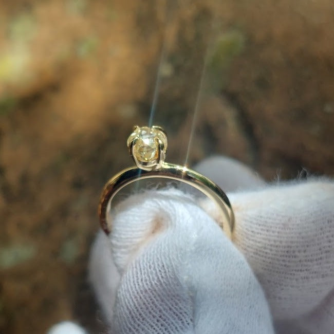 A stunningly soft Ellendale Natural Diamond elegantly held with four claws in 18k yellow gold.