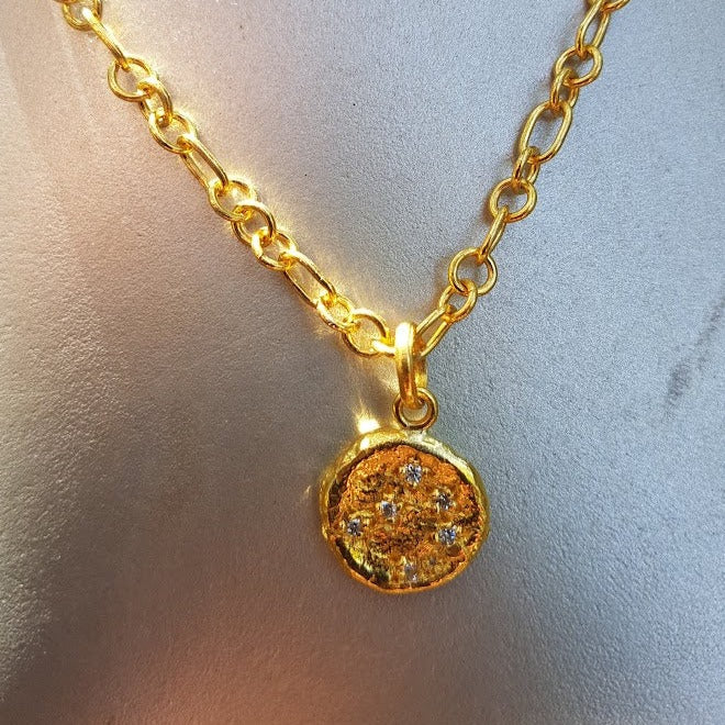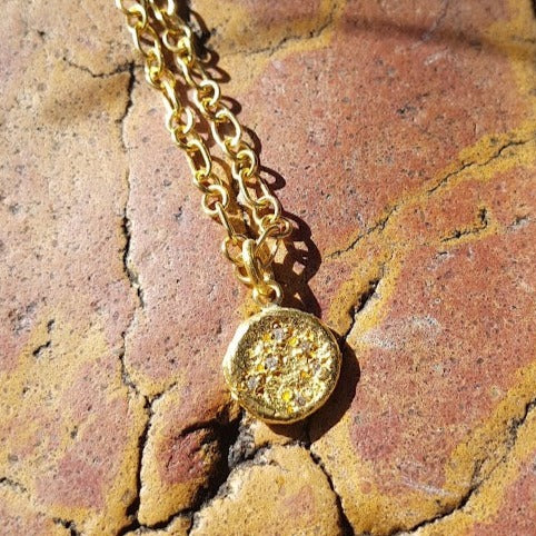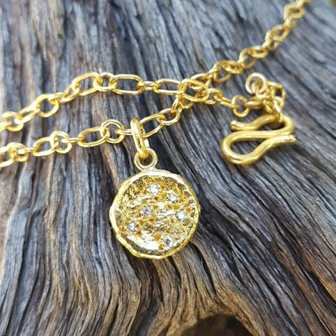 An organically designed star sign pendant using the ancient method of either sand or cuttlefish cast in the gold carat of your choice with added Diamonds. Pendant only (Price does not include chain)