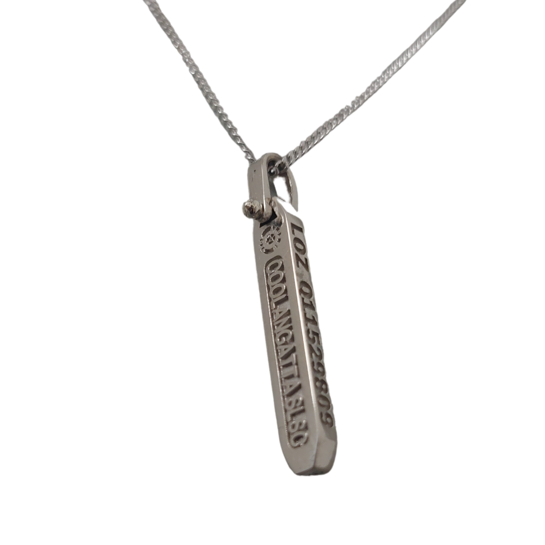 Pendant dimensions: Length= 30mm, Width= 3.75mm x 4.41mm, Weight approx 4gms